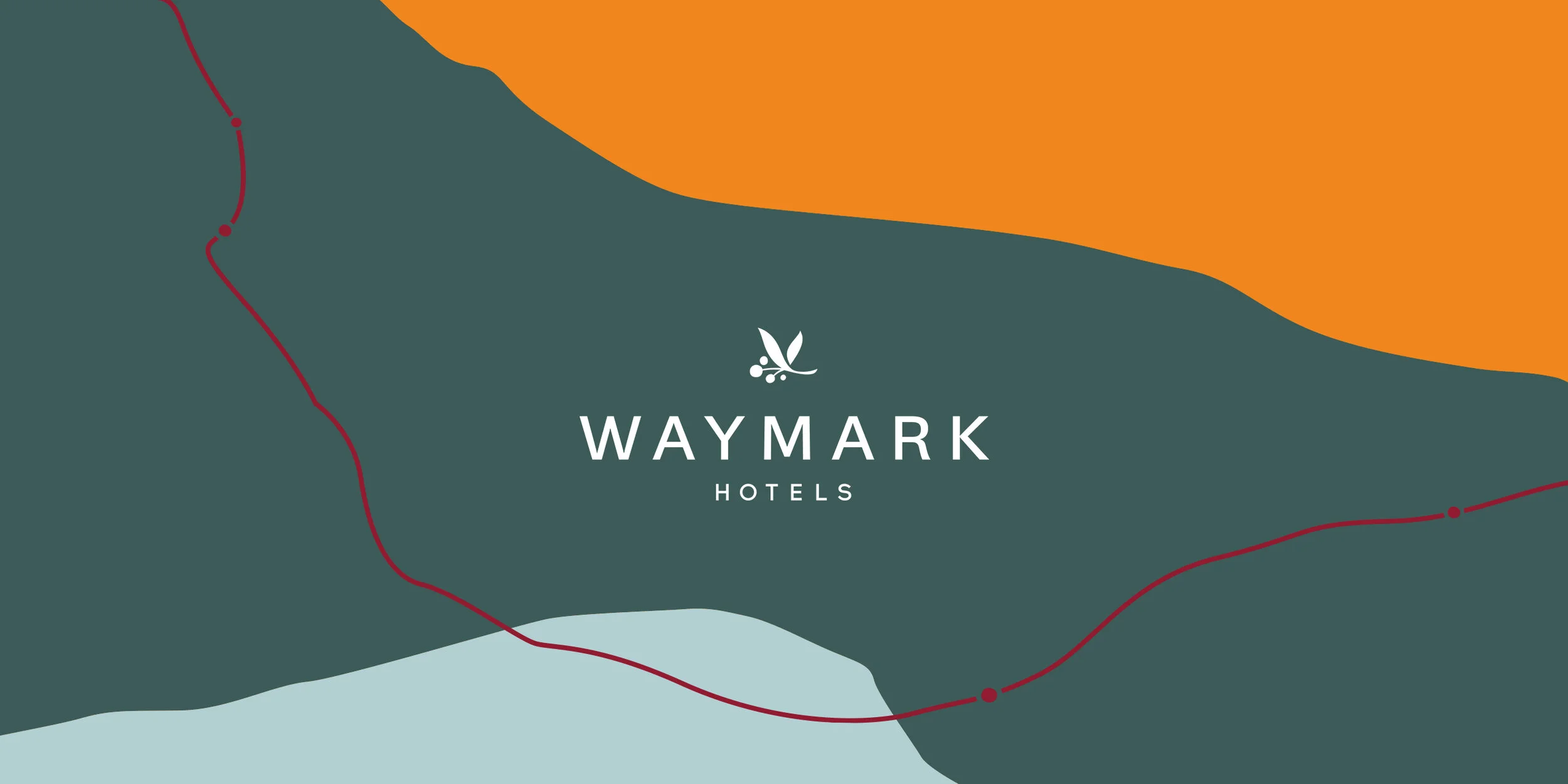 Waymark Group was born from Vinta, a group specialising in property development and management. The concept for the visual identity focuses on journeys and destinations and showing a sense of pace. It utilizes the route on maps, and roads as a visual device. It also incorporates white frames on developed photos to treat the photography. A Waymark stamp has been created to represent Waymark Hotels leaving a mark of quality.